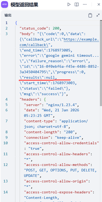 由于模型获取结果接口返回的值(results)也是放在body键当中的字符串中: