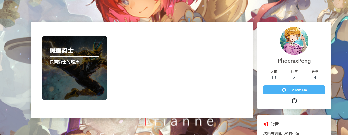 比如,我现在的网站是 https://amadeuspjq.cn,那么填写的地址就是网站+你引用在本地图片的目录(/img/background.jpg)。如果你的网站根目录不是’/‘,使用本地图片時,需要加上你的根目录。例如:网站是 https://yoursite.com/blog,引用一張img/xx.png圖片,則設置 background 為 /blog/img/xx.png